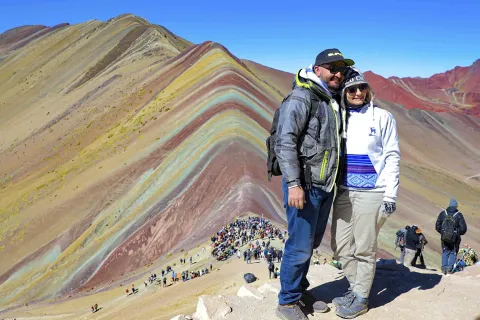 Today, embark on an early morning adventure to Rainbow Mountain. After a scenic 3-hour drive through the Andes, enjoy breakfast in a local community restaurant. Begin your hike to Vinicunca, also known as Rainbow Mountain, marveling at its vibrant colors created by mineral deposits. The hike is challenging but rewarding, with stunning views of the Andean peaks.