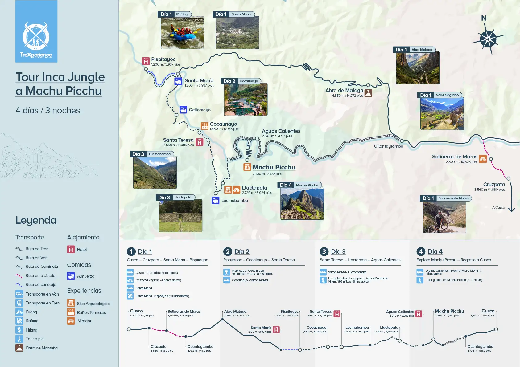 Itinerario del tour Inca Jungle tour a Machu Picchu 4 días 3 noches