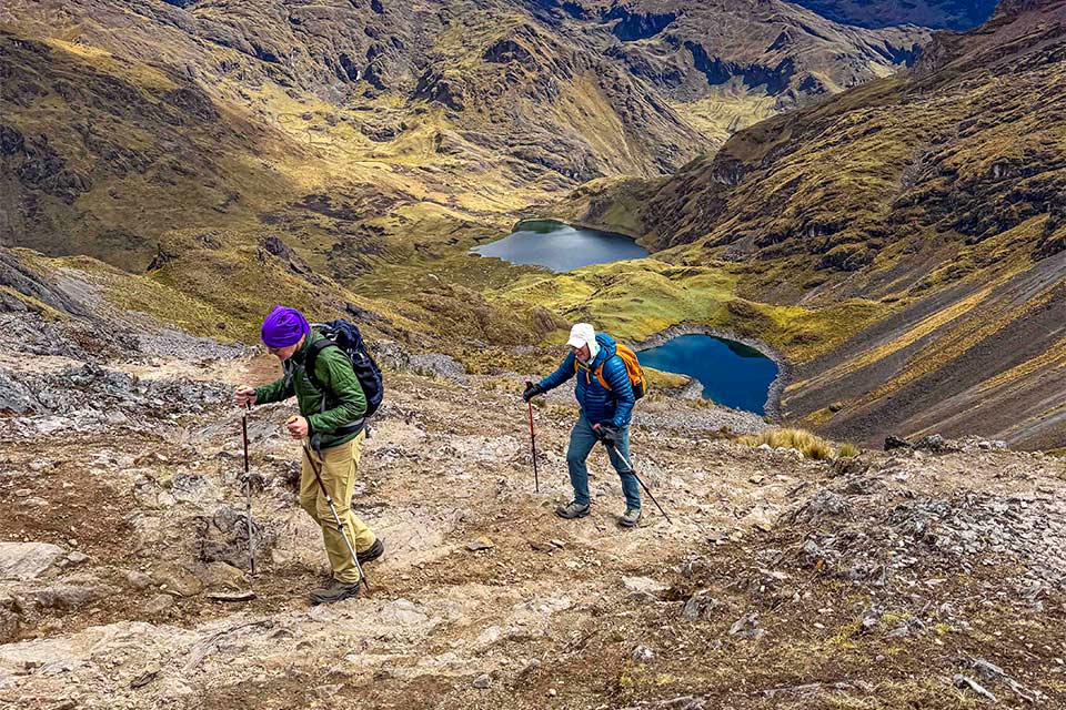 Un descenso de unas tres horas nos llevará al siguiente campamento. En la ruta podrás ver lagunas, vizcachas (roedores parecidos a conejos), llamas, alpacas, aves andinas y más wallatas.